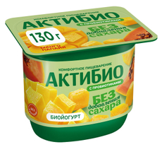 Йогурт Актибио безлактозный с манго и папайей без сахара 3%, 130г