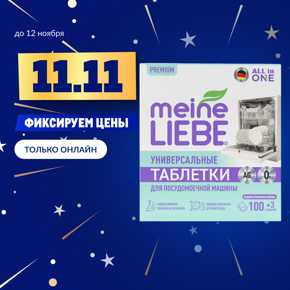Таблетки для посудомоечной машины Meine Liebe Все-в-1, 100шт+3шт с доставкой по Новосибирску.Если товара на момент формирования заказа не окажется в наличии, наш оператор свяжется с вами и предложит альтернативу.