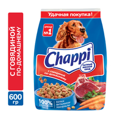 Корм сухой Chappi для собак с говядиной по-домашнему, 600г