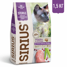 Сухой корм Sirius Premium для стерилизованных кошек с индейкой и курицей, 1.5кг с доставкой по Новосибирску.Если товара на момент формирования заказа не окажется в наличии, наш оператор свяжется с вами и предложит альтернативу.