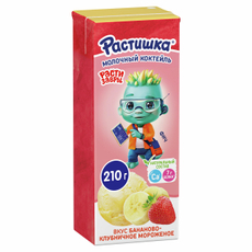 Коктейль молочный Растишка бананово-клубничное мороженое 2%, 210г