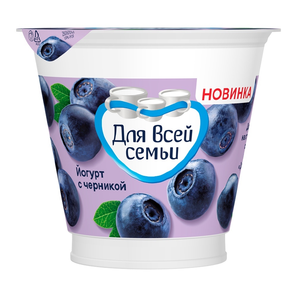 Йогурт Для всей семьи черника 2%, 220г с доставкой по Новосибирску.Если товара на момент формирования заказа не окажется в наличии, наш оператор свяжется с вами и предложит альтернативу.