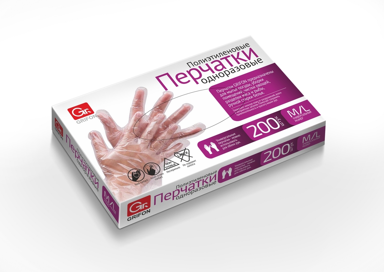 Перчатки одноразовые полиэтиленовые GRIFON 200 шт/100 пар, размер М/L с доставкой по Новосибирску.Если товара на момент формирования заказа не окажется в наличии, наш оператор свяжется с вами и предложит альтернативу.