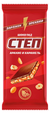 Шоколад Степ молочный с арахисом и карамелью, 80г